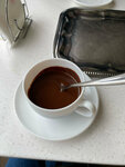 We bought hot chocolate with a young man. It is of course incredibly delicious and very very sweet. They paid 4 Belarusian rubles for one serving of chocolate (like 100 grams). It may seem like a lot for such a serving, but first try to eat it/drink it to the end. The place is clean and bright. A varied menu. Inside there is a company store and a coffee shop. The staff often comes to the coffee shop and cleans the tables. There are also hangers for clothes. In general, everything was great!