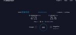 Плюсы? Интернет есть, хоть это и единственный провайдер у нас. Минусы: -ужасное качество сигнала (Пинг, потери пакетов..) Просадки по вечерам, или скорее с середины дня и до поздней ночи (Я понимаю что в тарифе прописано до 50, но от 49 до 50ти и 3, разница есть). Обрывы на +- сутки, еще до режима КТО. И это все за цены при которой в городе получаешь 500 Мбит, а не 50. При подключении уточнял есть ли смысл брать 100 и спасибо что честно сказали, смысла нет. Дополняю отзыв. Прошло больше полугода, второй скрин сделан в полден 24.07 и как видно показания не сильно соответствуют заявленным, а после девяти вечера скорость падает вообще до 2 Мбит/с.
