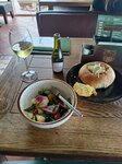 Такое себе… Ждать официанта для приема заказа 15 минут, ждать бургер 45 минут - такое себе. Салат с печенью невкусный, столовский. Пива только один вид (это ж вроде как паб🙈). Официанта не дождаться. Посуду со стола не уносят вообще. Ни одно блюдо не вызвало положительных эмоций, просто съедобно (мидии 2 вида, салат с печенью, салат с морепродуктами, рапаны, бургер, фондан). Из плюсов только вид 🤷🏻‍♀️