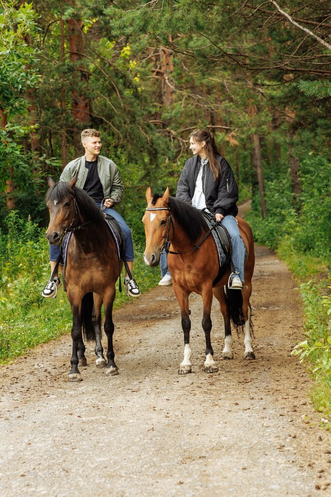 Ездили впервые на лошадях, прогулка на двоих 1 час, с каждым был инструктор, инструктора обаятельные вежливые с горящими и любящими к лошадям глазами На пофоткали, дали покормить лошадей, в сенях очень чисто и в целом атмосфера приятная видно что к животным относятся с уважением