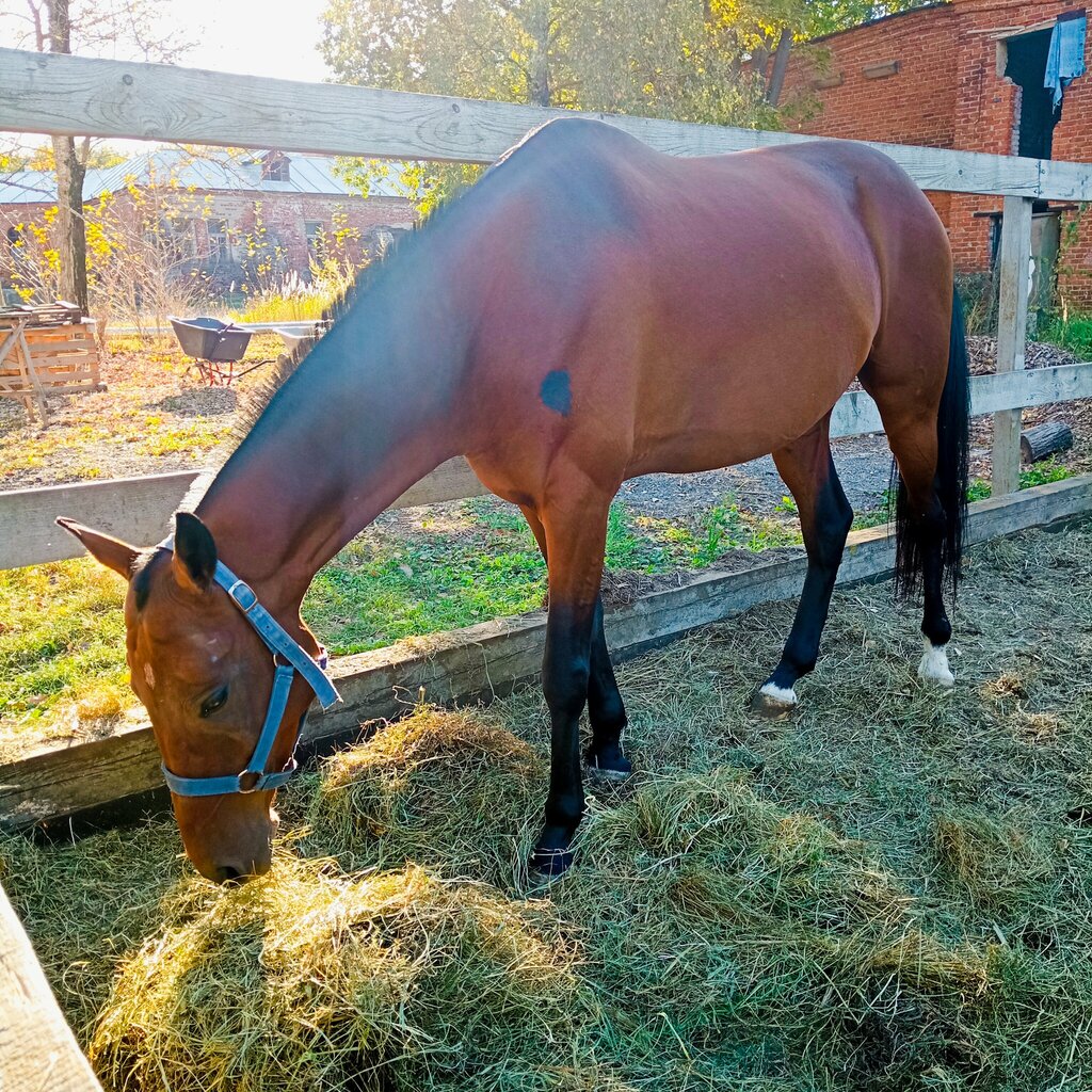 Огромная территория за ржавым забором, на ней маленькая, но новая конюшенка и старая, разваленная, с разбитыми окнами. 2200₽ стоит просто пошагать по лесу. Ну, такое себе удовольствие. Лошади гуляют в грязной леваде, территория не благоустроена. Не рекомендую тем, кто любит конный спорт во всей красе.