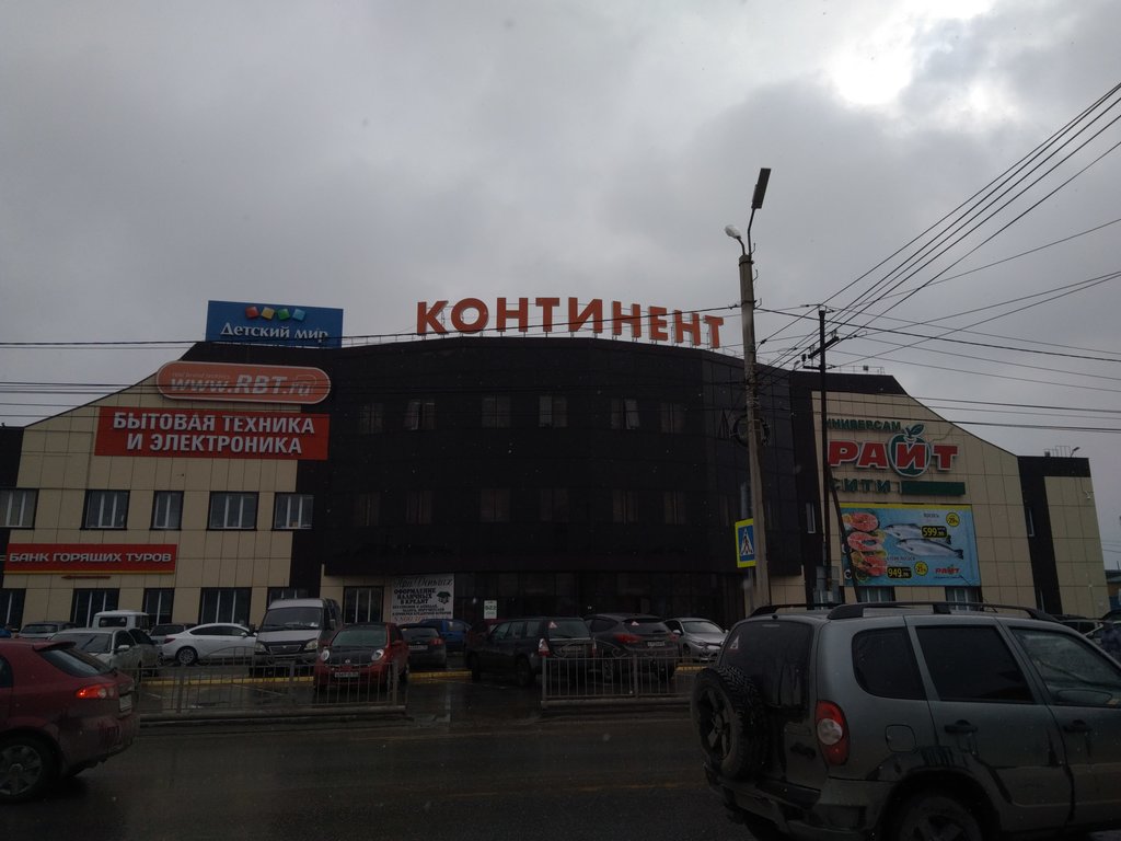 Торговый центр "Континент" находится неподалёку от селитебной части города. Наличие продуктового супермаркета с широким ассортиментом продуктов и наличие хозяйственного маркета с большим выбором посуды делают данный торговый центр привлекательным для посетителей.
