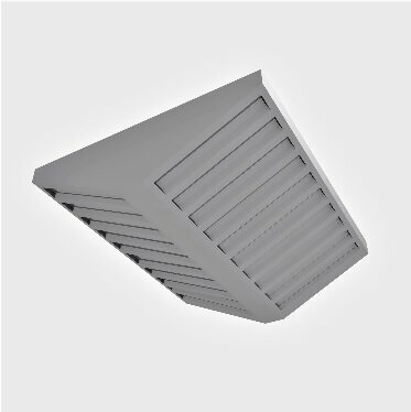 Зонт вентиляционный островного типа с съемными жироуловителями (фильтр туннельного типа) «ЗВОЖ», габаритные размеры ДхШхВ (мм) 800х800х400, весь зонт и съемные фильтра выполнены из нержавеющей стали марки AISI 430, в конструкции зонта также предус...