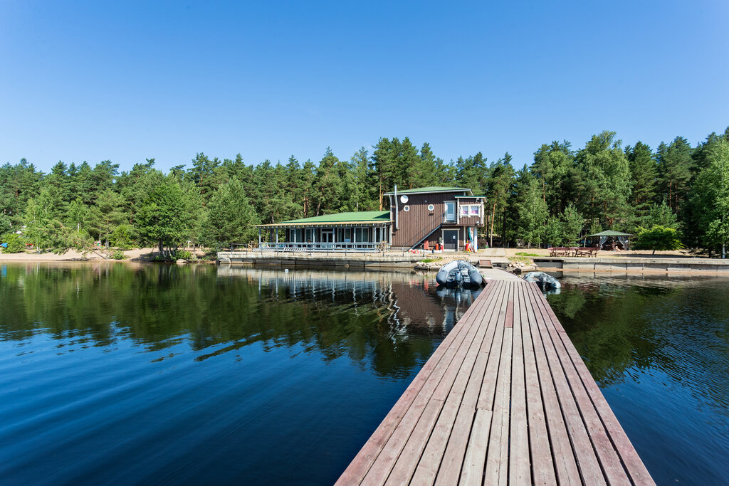Отличное место , приветливый персонал , можно воспользоваться прокатом лодок , сабов , другого инвентаря, хороший пляж . Очень красивая территория , есть беседки с мангалами , можно арендовать коттедж или небольшой домик на любой кошелек также есть баня на берегу озера . Можно вкусно покушать в кафе ( домашняя кухня) есть детская площадка . Ездил с семьей все довольны, море хороших впечатлений !