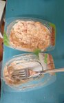 We took two salads from LEOR, the empty one is olivier, and the full one is with chicken and pineapple. Olivier is delicious, but I can't say the same about the salad with chicken and pineapple. It feels like there's a liter of vinegar in this salad, it's impossible to eat, most likely improper storage. Nightmare. One star.