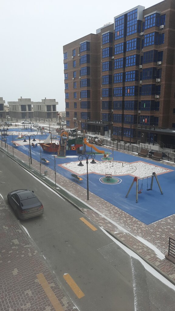 Классная площадка, тут же футбольная площадка, спортивная... Детей всегда много, и всем хватает места и развлечений. Отличные качели, горки 🎢