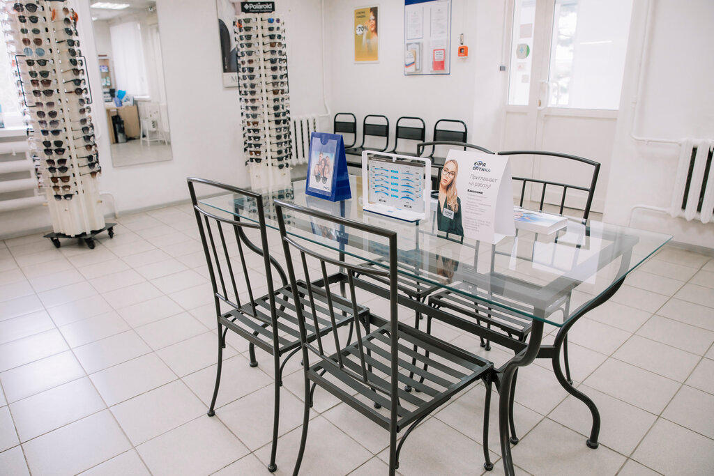 Салон чистый,уютный. Очень приятные продавцы-консультанты,всегда помогают советом при выборе оправы. Приятный бонус-проверка зрения. Бывают хорошие скидки на оправы и солнцезащитные очки,что не может не радовать. Есть стулья для посетителей,где можно переждать,пока идет подбор очков и оформление документов.
