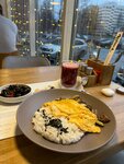 Были в праздничный день, стол заранее не бронировали, время ожидания больше 1 часа. Место приятное, чисто, немного шумная музыка. По кухне - хотелось попробовать всё максимально корейское. Салат из ростков свежий, вкусный, с нотками тмина, странно, но приятный вкус, первый раз ела в таком варианте. Кимчи - вкусно, остро, свежее, но показалось, что не промариновано должным образом, готовлю сама, знаю, как должно быть. Свинина в соусе с ананасами - неудачно. Овощи сырые. Соус кислый. Он должен быть сладким, густым, обволакивающим, овощи не должны разваливаться, но они точно не должны быть сырыми и хрустеть. Даже тонкая нарезка их не спасла. Пибимпаб - вкусно, остро, бульон хорошо дополняет. Булочки жаренные вкусные. Чай ароматный. С собой взяли роллы с огурцом, всё свежее, вкусное, топпинги есть, упаковано хорошо. По гигиене и сан.состоянию - в зале и в туалете чисто, посуда чистая без сколов, приборы чистые. Персонал приветливый, официант хорошо проконсультировала по блюдам, расчёт быстро, удобно. Рекомендую. Но без брони нужно ждать стол долго.