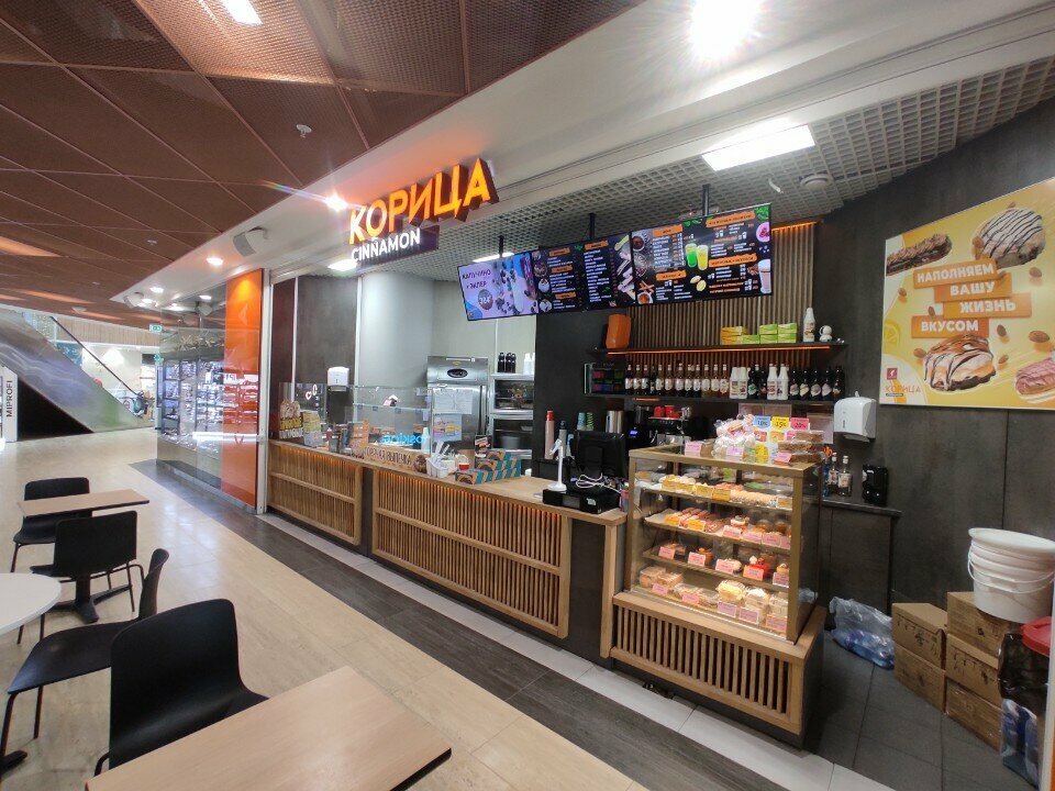 Персонал стоит с таким лицом, что даже подходить не хочется. Не здороваются, очень не вежливые, отвечают сквозь зубы. Спросила можно ли разбавить чай, нахамили. Кофе сделали еле теплый (употребляли мы все сразу). Булочки положили помятые и порванные с одного боку. Все настроение испортили. Хотя сеть «Корица» я люблю, и часто покупаю их булочки, они очень вкусные, но тут какой-то ужас, и не первый раз такое