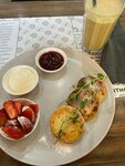 A great coffee shop, a large selection of coffee and milkshakes (including those with the notorious tapioca balls, although I'm not a fan). The volume of drinks was amazing: 0.3 is the most modest, large drinks are served at 0.7. And in principle, if you are not hungry, you can limit yourself to them. However, the urge to try something edible was stronger. The menu is European, there are few items, but there is plenty to choose from. I chose a mix of Belgian waffles (hearty and sweet), and I didn't regret it. The waffles were delicious. By themselves, they are almost not sweet, as I like them. Hearty with cream cheese and poached egg, sweet with strawberries and whipped cream, a little sweet to my taste (which is quite expected), but not cloying. The portions are large, and one meal replaces breakfast and lunch (or lunch and dinner). There aren't many tables, I guess there might be a full house in the evening. During the day, when I visited the coffee shop, it was relatively free (the customers changed, no one stayed too long, but it was possible to find a free table). The establishment has air conditioning and sockets, it is convenient to sit down with a laptop and work. The service is decent. To invite the waiter, you need to press the call button. The waiters are not intrusive: they bring the order and take away the empty plates almost imperceptibly. No one looks askance at the fact that you are sitting with a laptop for several hours (although it takes more than an hour to master such an order). The place is very comfortable, suitable for work, relaxing on a hot day, meeting good friends or psychological relaxation alone. I visited this location for the first time, then visited another institution, where I was also not disappointed. If you will be in Shymkent, visit it by all means, I recommend it.