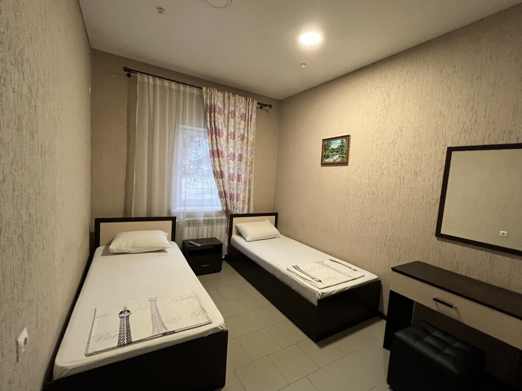Ужасный отель даже для одной ночевки. В нем нечем дышать в прямом смысле. Такие обычно стоят 1000 за ночь, а не как не 2000, что является обычной ценой в зимний период на хорошие дорожные гостиницы. Сначала нам показался нормальным, сойдет. Но воздуха в комнате совсем нет, вентиляция отсутствует, вытяжки в туалете тоже не предусмотрено, еще и батареи жарят нещадно, уничтожая последний кислород. Невозможно выспаться в таких условиях и набраться сил на новый день езды на автомобиле. Но самый страшный ужас увидели, когда выключили свет. В потолке просвечивается огромное количество плесени лохмотьями, видимо из-за отсутствия вентиляшки. С ванны толпами бегают пауки по полу. Еще по белью тож странно, лежало два маленьких одеяла и один большой пододеяльник, который мы сами должны вдеть непонятным для нас образом. Чайника, холодильника тут нет, зато есть обогреватель.... Не ясно зачем, когда очень жарко и без того. Лучше бы чайник и кружки были, которые хоть уют создают, в номере пить чай приятнее, чем бегать к выходу за кипятком, где стоит общий чайник. В душе нет шторины, поэтому брызги летят куда попало, не люблю такое, но видимо хозяевам виднее. Туалетной бумаги тож не было, стоял какой-то тонкий моток, похоже от прошлых жильцов. Хотели еще поинтересоваться где можно поесть рядом, раз кафе от отеля не работает, на что получили ответ, что бог его знает где тут какие кафе. Как бы пофигу на постояльцев, пришлось искать по отзывам в сети, хотя женщина с ресепшена явно знала какие тут рядом общепиты, но была как-то не дружелюбна. Потом ей показалось, что у нас животные в сумках, хотя мы просто пронесли сумки с вещами в номер. Впервые встречаем такое отношение за 45 дней путешествия по России, Турции и Грузии, в котором мы находимся в данный момент. А в этот отель заселились случайно, на дорогу упал густой туман и ехать дальше было опасно. Плюс был только в напоре воды - он идеальный. P.S: полотенец в номере тоже не было, но хорошо, что по просьбе выдают. Хотя во всех отелях всегда лежат полотенца по умолчанию - маленькие, большие и для ног полотенчатый коврик на пол. А тут спасибо хоть по одному большому дали. Если есть возможность проезжать мимо - проезжайте