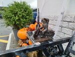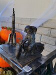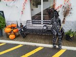 Помимо космонавта здесь есть фотозона с тыквами и фигуры из деталей машин. Рядом с космонавтиком ещё ракета есть.