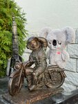 Космонавтик с мотоциклом спрятался на территории мотосалона в окружении металлических старших собратьев - байкеров. Мальчик, сидя на мотоцикле, салютует подошедшему к нему путнику. За спиной ракета, рядом железная дева на скамейке… Заметить малыша с дороги сложно, но по будням с 10.00 до 19.00 вход на территорию и осмотр скульптуры свободный. Находится в стороне от основных достопримечательностей Калуги, но в шаговой доступности от этого астронавта можно найти космонавтика - туриста, шагающего на входе из гостиницы Хилтон Гарден Инн. Мини-скульптуры - отличная идея для прогулок и изучения достопримечательностей Калуги. Ещё больше космонавтиков с фото ищи в моем профиле.