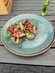 Подкупило расположение ресторана, красивая с виду террасса, вообще часто стараемся посещать новые для себя рестораны и было решено - настал черёд koster гриль-бар. Забронировали столик на террасе в пятницу вечером, что было удивительно гостей практически не было, живой вокал внутри помещения, это здорово, но всё поменялось когда администратор провел нас к обгаженному птицами столику, на просьбу принять меры, нам сказали что сейчас придет человек и всё будет в лучшем виде, человек к слову пришел только минут через 15, старательно стер какашечки со стула и удалился, ну да ладно, пепейдем к главномук блюдам. Сайт гласит что у ресторана есть даже два правила: -Неизменными для ресторана остаются два правила: первое — только продукты высочайшего качества приготовленные на натуральных углях. И второе — подача блюда, как искусство. Скажу сразу это - ложь. С рекоминдации официанта я заказал брускету с с росбифом -490р. Ребрышки с соусом чтото там - 890р. Моя малышка заказала цезарь с компчеными креветками 590р и цитирую -"ооочень вкусный говяжий язык, если вы любите блюда с языком вам точно понравится!" за 980р. А что по вкусу? Брускета норм, ничем не примечательная, на обычном слегка сушенном хлебушке, даже не домашнем, 3 из 5. Цезарь с креветками, тоже ничего особенного, но креветки не вкусные 3 из 5. Ребрышки - тупо кусок тушенки из согласия на подушке из корня сельдерея с кучей жилок и рвотных позывов от того что жуешь что-то скольское 2 из 5. Иииии гость сегодняшнего стола говяжий язык с картошечкой, три ломтя крупно отрезаных кусков языка с полу сырой пресной картошкой, язык был действительно отвратительным, сложно описать что с ним было не так, но это худший язык что я пробывал, вкус был настолько не приятным что еда просилась обратно из рта в тарелку, раньше мне казалось что такое сложно испортить, в любой столовке язык на голову, а то и две вкуснее, чем в ресторане koster 1 из 5, за отказ от блюда нам стыдливо сделали 10% скидки, даже не отменили позицию. Общий итог: дорого, не вкусно, отвратильно и не уютно - настоятельно не рекомендую. Ксли со вкусом блюд всё понятно, на фотографиях предлагаю посмотреть "подачу блюд как искусство" и уже для себя решить, стоит ли тратить время на данное место. P. S. К чеку в 2300р прилагается расстройство желудка и слезы от потраченного времени.