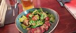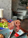 Koster как и положено огню находится в центре внимания нашего города, можно сказать в центре всего города! С одной стороны - улица Ленина, с другой стороны - городской сад с каруселями и развлечениями. Ресторан расположен на втором этаже, есть открытая веранда, которая выходит на территорию Цветного бульвара. Ресторан оформлен лет 7 назад, хоть и стильно, но местами уже требуется корректировка интерьера, мебели, посуды… свободного места, воздуха в ресторане много (высокий потолок и большие окна), есть круглые столы на 6 человек, есть с удобными диванчиками, никто никому не мешает, можно спокойно беседовать, не стесняясь быть услышанным за соседним столиком. Но основная особенность - живая музыка (небольшая сцена), возможность потанцевать и отдельная кальянная зона. В целом ресторан больше переходит в элегантный клуб (где можно не только ужинать), что очень даже хорошо! Официанты вежливые, внимательные, достаточно хорошо знают меню (сразу предупреждают о стопе на позиции, уточняют порядок подачи, знают время приготовления, средний вес стейков и тд. Приятно удивлен!). Касательно меню - хороший выбор блюд, регулярное обновление, ориентир на использование гриля (на днях снова будет обновление). Отсюда хорошее предложение стейков. Жаль не было филе миньон, заказали рибай. Стейк вышел на 370 грамм, хорошей толщины и очень точной прожарки медиум! Очень вкусный стейк, особенно с перечным соусом! Салаты - отлично, все остальное - тоже на высоте. Немного разочаровали коктейли, с не очень большим содержанием алкоголя (на грани минимума). Выбор пива - весьма ограничен. Крепкие напитки и вина в ассортименте ;) Вечером в этот ресторан столики надо обязательно бронировать. Ужинать в компании друзей, коллег - это хорошее место! Рекомендую 👍