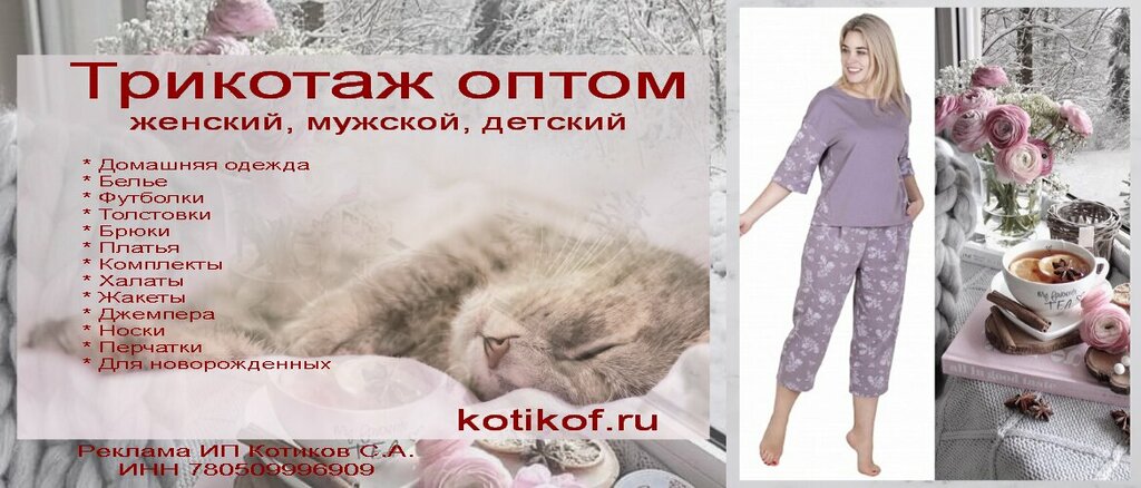 Недавно сделала заказ в интернет-магазине Kotikof онлайн:трусы 100%хлопок(кулирка) и ночную рубашку.Очень довольна качеством материала и пошивом,р-р полностью соответствует.Обслуживание на высшем уровне.Заказ приняли,обсудили доставку СДЕК(280руб), в связи с короновирусом лучше не ездить.Качество отличное.Заказ пришёл быстро.Оповещение о движении заказа было.Спасибо,Kotikof.