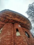 Здание,к сожалению, обросло хозяйственными постройками,обшитыми сайдингом. Видимо,по этой причине,его частично обнесли забором,спасибо,что не глухим. Но теперь здание нельзя посмотреть со всех сторон( А оно ведь такое необычное! С каждой стороны читается по-своему.