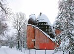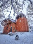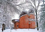 Давно хотел увидеть эту "игрушку": нам она была интересна исключительно с точки зрения архитектуры. Но уж архитекторы покуражились тут знатно: начали подступаться к проектированию этого здания (тогда ещё музея) аж в 70-х годах прошлого века, когда на слуху были творения Ле Корбюзье и в Советском Союзе была издана замечательная книга-альбом о его творчестве. Похоже, и наши авторы "Ковчега" не обошли своим вниманием его творения. Ну и получили полный карт-бланш... Не успели с музеем. Реформы. Перестройка. Музей стал неактуален. Подобрали недострой и довели до завершения Евангелисты-Пятидесятники уже в новом веке - и то хорошо. Получилось не совсем по первоначальному проекту, но всё равно любопытно, хотя и не без слабых мест: форма подавила функцию. Очень тесная входная зона. Небольшой, устроенный амфитеатром молельный зал почти без естественного освещения, так же, как и детская игровая комната. Очень сложная кровля, изготовленная "нашими руками" и в нашем климате обычно не обходится без протечек (думаю, и здесь они присутствуют). Когда мы зашли в церковь, там проходила воскресная служба и зал был почти полон. Однако, нас там встретили весьма доброжелательно, предложили места для сидения, не возражали против фотографирования. Совершенно иная атмосфера нежели в храмах Православных... Вышли, погуляли вокруг. Вот только снег шёл, не переставая...