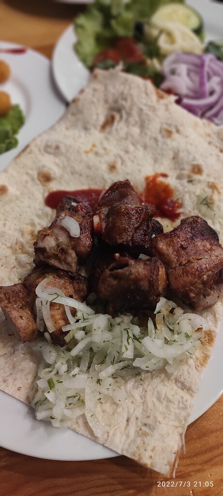 Отличный шашлык из свинины. Можно выбрать салат на любой вкус. Для детей есть детское меню. Так же можно заказать и попробовать пиццу. Всем рекомендую