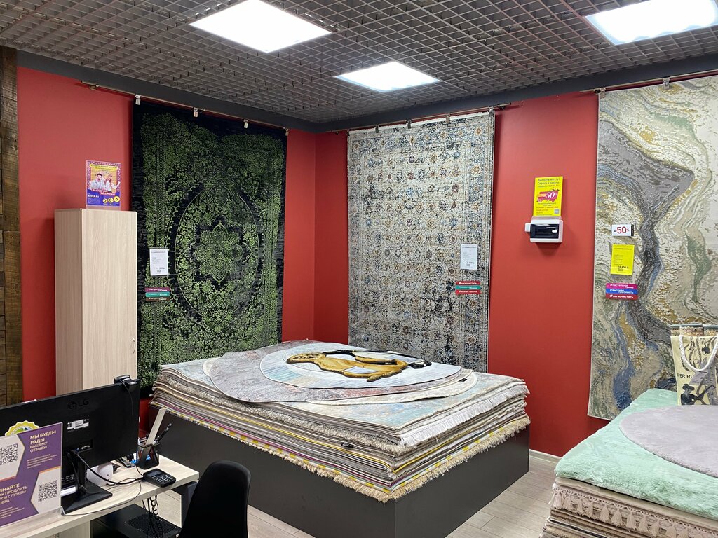 Отправились в этот магазин всей семьей. Надо было выбрать ковёр в гостиную и в детскую. Продавец оказался внимательным, подобрал ковры под интерьер по фото и под пожелания жены и деток. Доставили домой бесплатно, дали гарантию. Хороший магазин, находится в Радуге.