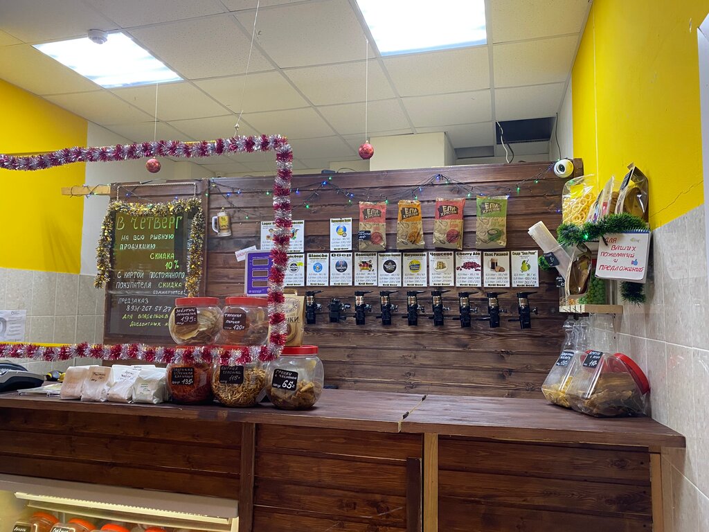 Хороший магазинчик, нужно войти в магазин и пройти дальше за кассу, а там уже и пиво и закуска =) Есть своя скидочная система. Просто так подарили сухарики при покупке пива, мелочь, а приятно!