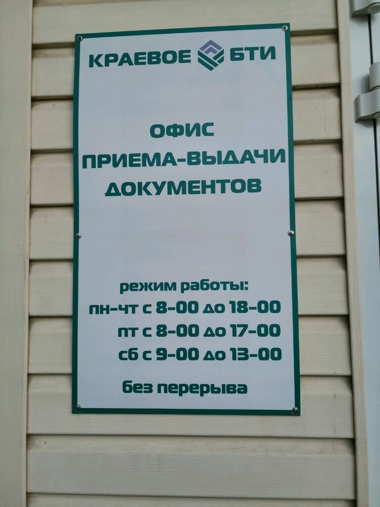 Пришёл за выпиской в краевое БТИ,обратившись в инфо.окно номер 9 получил четкий,раскрытый ответ на мой вопрос. На следующем день, собрав нужные документы, в 5-6 окне с моими документами работала девушка по имени Диана,не смотря на свой молодой возраст,очень открытая к клиенту, грамотный специалист своего дела. Руководство Краевого БТИ на ул. Леваневского однозначно в хорошем контакте со своими сотрудниками. Что видно при общении с ними. Спасибо за быстрое решение. Теперь слово за тех.экспертам, на осмотре объекта)))