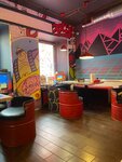 Классное место, чтобы посидеть с друзьями. У многих столиков рядом есть приставки, можно поиграть в разные игры. Есть автоматы. Оформление залов атмосферное. Пицца вкусная, большая, сытная. Напитки тоже очень порадовали: есть и алкогольные, и безалкогольные коктейли. Официанты очень приятные, внимательные, работают быстро. Ценник адекватный.