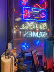 Честно говоря, место разочаровало Забронировали с друзьями столик на 19:00, пришли даже заранее, вот уже стоим у стойки, ждем освободившиеся места, но нет, садят других людей, мы были в шоке с этого: приходят люби с улицы - садят их, а не нас Спустя 30 минут все-таки нашелся для нас стол. Заказали несколько напитков: алкогольные и б/а и 2 здоровые пиццы Все местные коктейли это шедевр: подача 5/5, вкус 5/5, так и стоимость отличная. Напитки - однозначно самое лучшее, что есть в этом заведении Пицца. Подача 5/5, но, даже не так. НО! Она банально невкусная! Это есть невозможно! Толстое пресное тесто, самые дешевые булки и сосиски, котлета в мини бургере - сильно пережаренный фарш. За пиццу 2/5 Интерьер: максимально на любителя, кому-то может понравится. Но правда помещение и автоматы нуждаются в ремонте: уставшая мебель и стены, маленькие залы, где вы сидите битком, не вызывает это все ВАУ эффекта, о котором говорят многие блогеры. А также последнее, но не по значимости: У игровых автоматов проблема с заземлением, причем такое, что напряжение идет на корпус автоматы! Не однократно сталкивались с этим! Автоматы бьют током, и бьют больно!