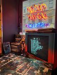 Была в этом заведении 18.01.25. Забронировали столик в этот же день на четверых. По телефону сообщили, что единственный свободный столик на вечер у входа, нас это немного смутило, но уж очень хотелось сюда попасть. Также нам сообщили, что сделают все возможное, чтобы нас пересадить, если другие столики освободятся. Когда мы пришли, просидев минут 10-15 у входа, нас действительно пересадили в общий зал, за что отдельное спасибо. Концепция у данного заведения проста: пора 80-х, старые приставки (по типу пс1), пинпонг (за отдельную плату (300р за 4 шара), остальные все автоматы и приставки бесплатные), жирная, но вкусная еда, разноцветные коктейли и шоты. Мы остались в полном восторге. Однозначно советую!