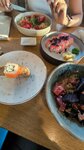 Брускетта с лососем, чукой и сырным кремом