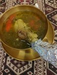 Грязно, на стеллажах пыль с сантиметр, персонал не особо внятно отвечает на вопросы по меню. Попросили принести столовые приборы, их принесли просто в руках!!!! Просто своими руками взяли и принесли! Даже элементарно, хотя бы обернули салфеткой! Не важно как вы их собирали, но при отдаче клиенту, должна быть эстетика! И еще около 200 рублей за обслуживание!!! Что??? А оно было??? Это пока первое место в Дербенте, откуда мы в спешке уходили! По еде. Суп куринный вкусный, окрошка, забыли положить огурцы, баранина сочная, мягкая, но безвкусная.