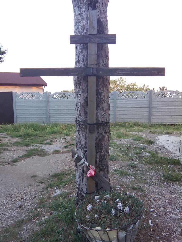 Этот крест был поставлен в знак того что на этом месте будет возведёна часовня. Теперь там возвели часовню. Строительство продолжается