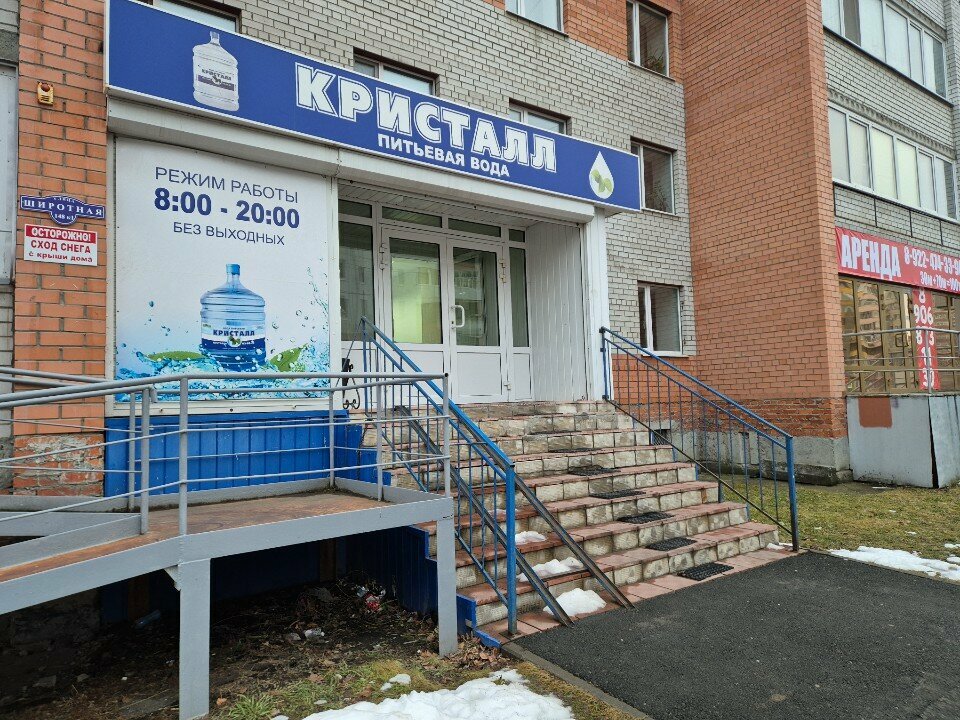 Удобно, рядом с домом, если нужна парковка, она есть. Пользуюсь водой Кристалл давно, вкусно, полезно, спасибо👍