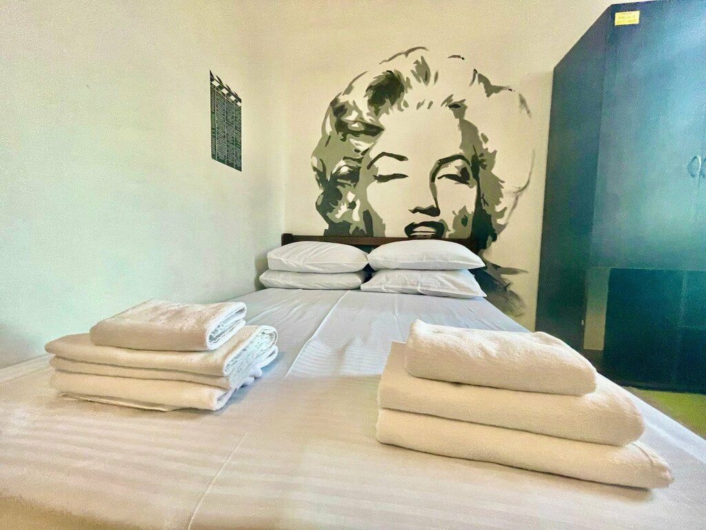 Если Вы мечтаете оказаться внутри кино или переспать с Мэрилин Монро, то Вам однозначно сюда😉 Меня как киномана очень впечатлил интерьер😍 Подход к оформлению не просто креативный, а концептуальный. Номера разные на любой вкус, цвет и размер. До пляжа рукой подать. Очень тихо и никто не мешал выспаться. Вода круглосуточно. Шикарная терасса на последнем этаже с удобными диванами и спортивным инвентарём-хочешь боксируй, хочешь медитируй, а хочешь-устрой "праздник живота", всё для этого есть. Очень внимательный, заботливый и я бы сказала загадочный метрдотель 😉 или "министр-администратор" 🤔 🙃 Из недостатков - не было москитной сетки. Зато была шторка с видом на Париж. Однозначно приеду ещё сама и рекомендую Вам попробовать на вкус отличный без кавычек крымский сервис👌