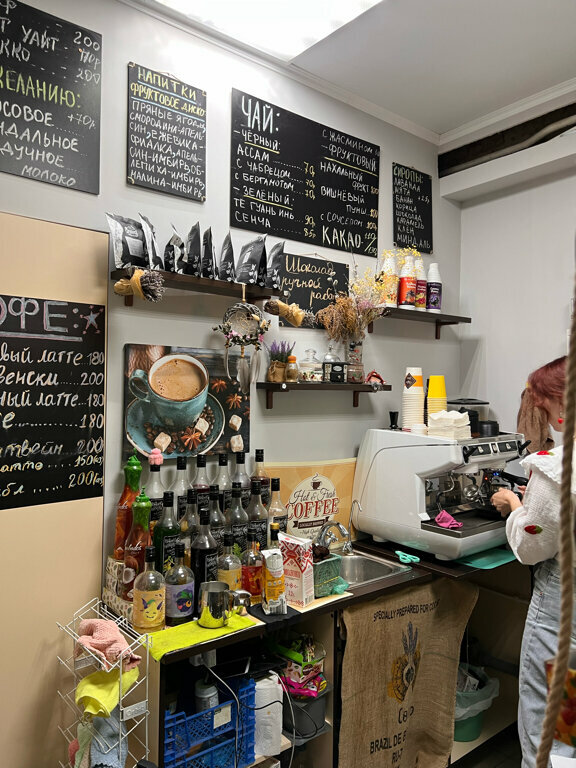 Самая душевная кофейня, в которой я была. Хожу уже не первый год и получаю огромную порцию заботы, душевных разговоров и вкусного кофе. Цены очень приемлемые и ниже, чем во многих других кофейнях города. Помимо кофе есть выпечка, шоколадные батончики и другие мелкие сладости. Кофе делают быстро, часто подстраиваются под ваши индивидуальные предпочтения и могут сделать покрепче, послаще или поинтереснее. Для меня это важно. Однозначно советую