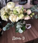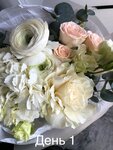 Собрали по пожеланиям в нужный день, на этом плюсы закончились. Изначально букет где-то лежал и замялся со стороны розы. Стебель эустомы был настолько коротким, что перевязанный в упаковке не доставал до воды видимо пару дней, привезли жухлый цветок. Распаковала обертку, ужаснулась, вода ему досталась наконец. Сама эустома и ранункулюс должны стоять свежими до 2 недель, как у меня было с другими студиями цветов. Эти же цветы на 2-3 день завяли при надлежащем уходе, без включенных батарей в помещении, без сквозняков, обновлением фильтрованной воды и обрезкой стеблей. Цветы продали изначально на последнем издыхании за большие деньги. Не стоит обращаться в этот салон, если не хотите расстройств на 2 день. Крайне не рекомендую