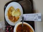 Порции маленькие. Солянка жидкая, пересоленная, куча лука. В пюре попадаются куски картошки.