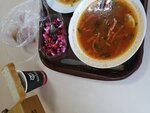 Качество еды обратнопропорционально её цене 😂😂 Солянка пустая, три варёных полкартошины 62 рубля🤑, тефтели куриные вроде из курятины, винегрет как то так себе за 64рубля. Однако, от Сызрани до Тольятти кормят получше в Печерском. Но там както неприветливо. Поэтому питаюсь то там то тут. Тут ещё туалет чистый и салфетки тоже 😀