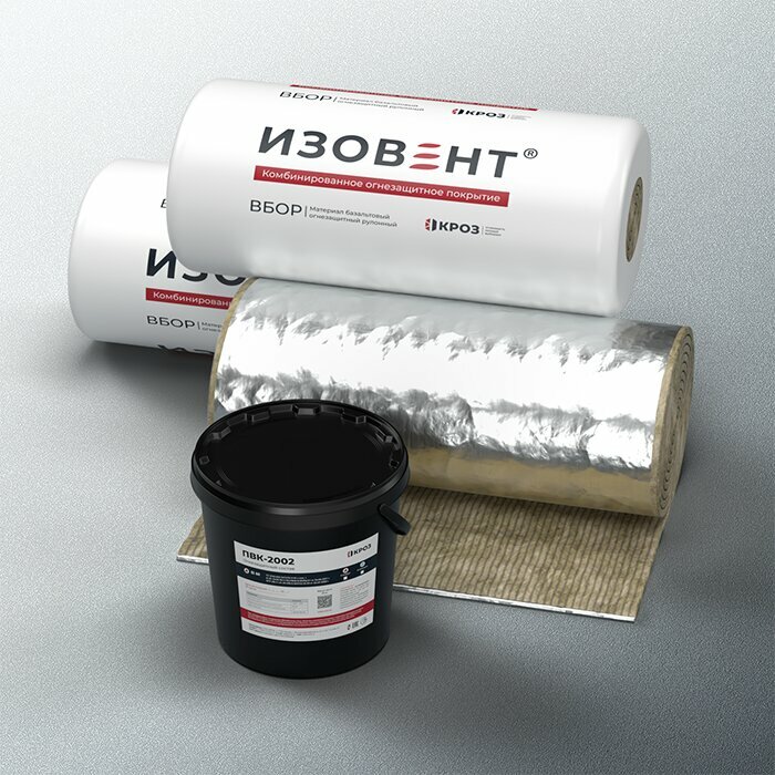 Изовент® - комбинированное огнезащитное покрытие на основе базальтового рулонного материала, кашированного алюминиевой фольгой, и клеевого состава ПВК-2002. По желанию заказчика материал кашируется алюминиевой фольгой, полиэтинированной армированн...