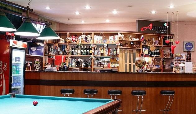Improve the menu of the bar and kitchen, bring bathrooms to mind, improve lighting, interior decoration and there will be norms. It's good for playing billiards, but not very good for a complex pastime.