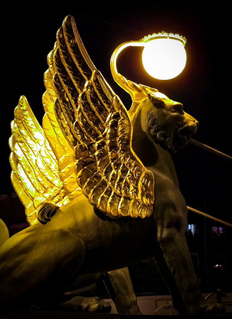 Очень красивые скульптуры львов на Банковском мосту через канал Грибоедова в Санкт-Петербурге.