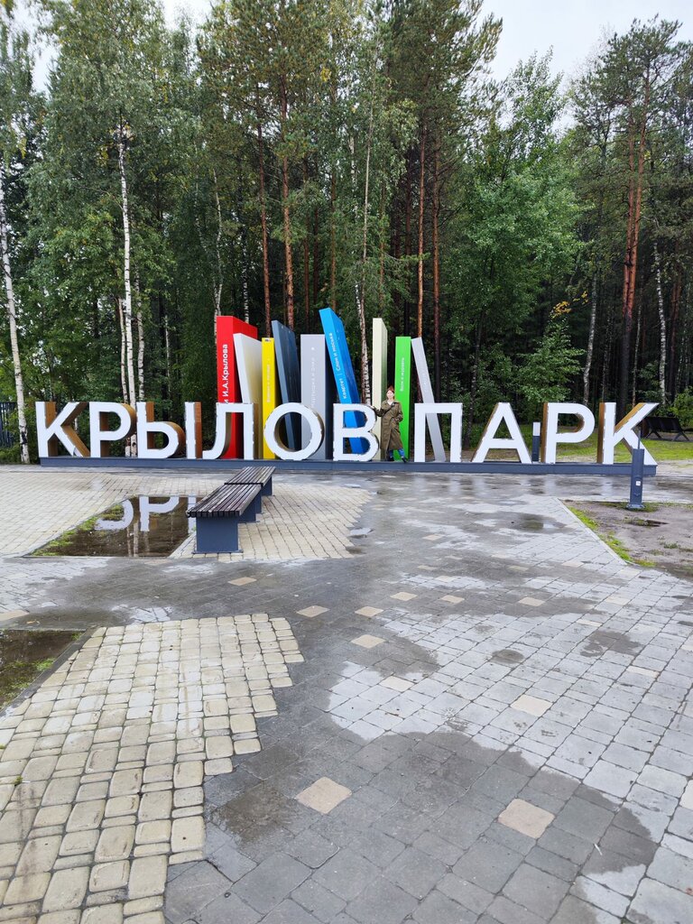 Задумка парка замечательная! Тематически выдержана -"Басни Крылова". Фигуры персонажей басен в разных местах парка. Есть детская и спортивные площадки. Но по площади парк маленький. Может будет расширение? Хотелось бы, район то растет...