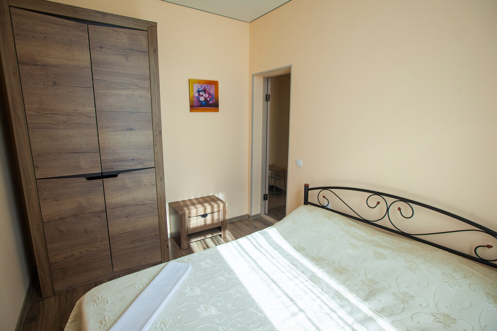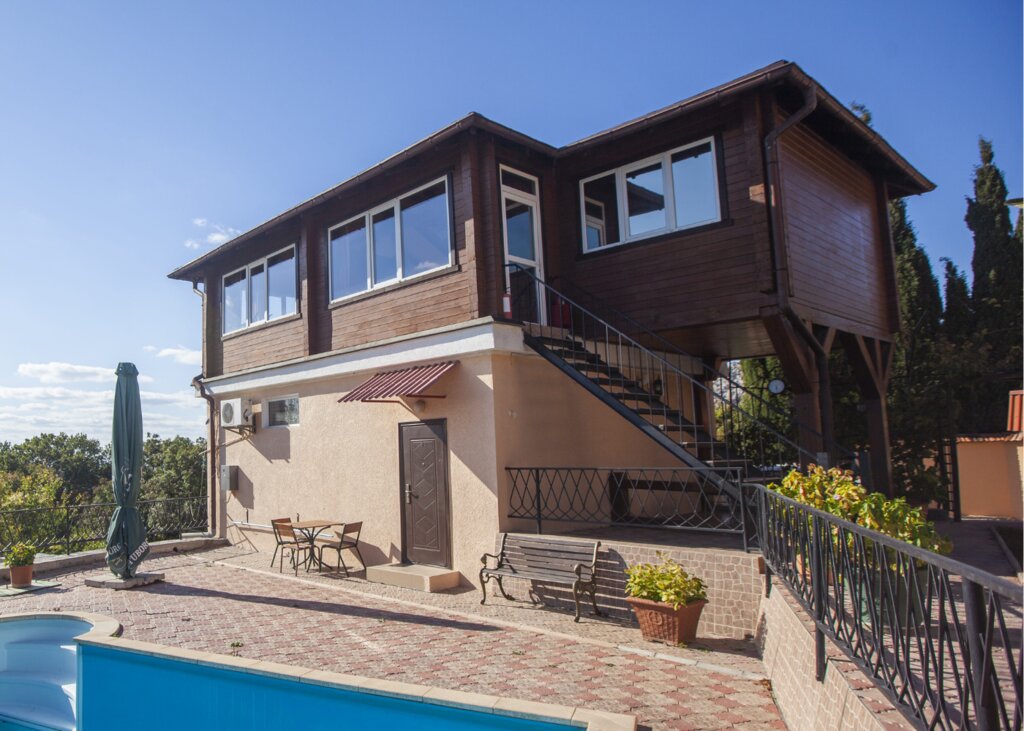 Уютное место с видом на море,находится на возвышенности. В каждом номере есть свои плюсы, номера на 2м этаже более комфортные. Во дворе есть бассейн,который регулярно очищается. За домиком и территорией ухаживает оч внимательная супружеская пара - все вопросы можно решить с ними. Мангальная территория - за домом,что для меня неоспоримый плюс - дым не выгоняет меня из бассейна, например 👻😃 За доп.плату можно заказать завтраки, кофе/чай. Рядом супермаркет "Ульяновский", автостанция,кафе.Мы на обед ходили в кафе "Домашняя кухня"(поворот направо за Ульяновским).Ценник оч удачный,недорого и вкусно - татарская/европейская кухня, Лагман и чебуреки особенно хороши👌До моря нужно спускаться около 700 м, все через лестницы, для некоторых может быть непросто - с другой стороны,отличная возможность добавить к своему отдыху физ.активность. Сосны,Кипарисы,гора Кошка и скала Дива - это местные алмазы,которые не требуют огранки. Это чудо 🥰