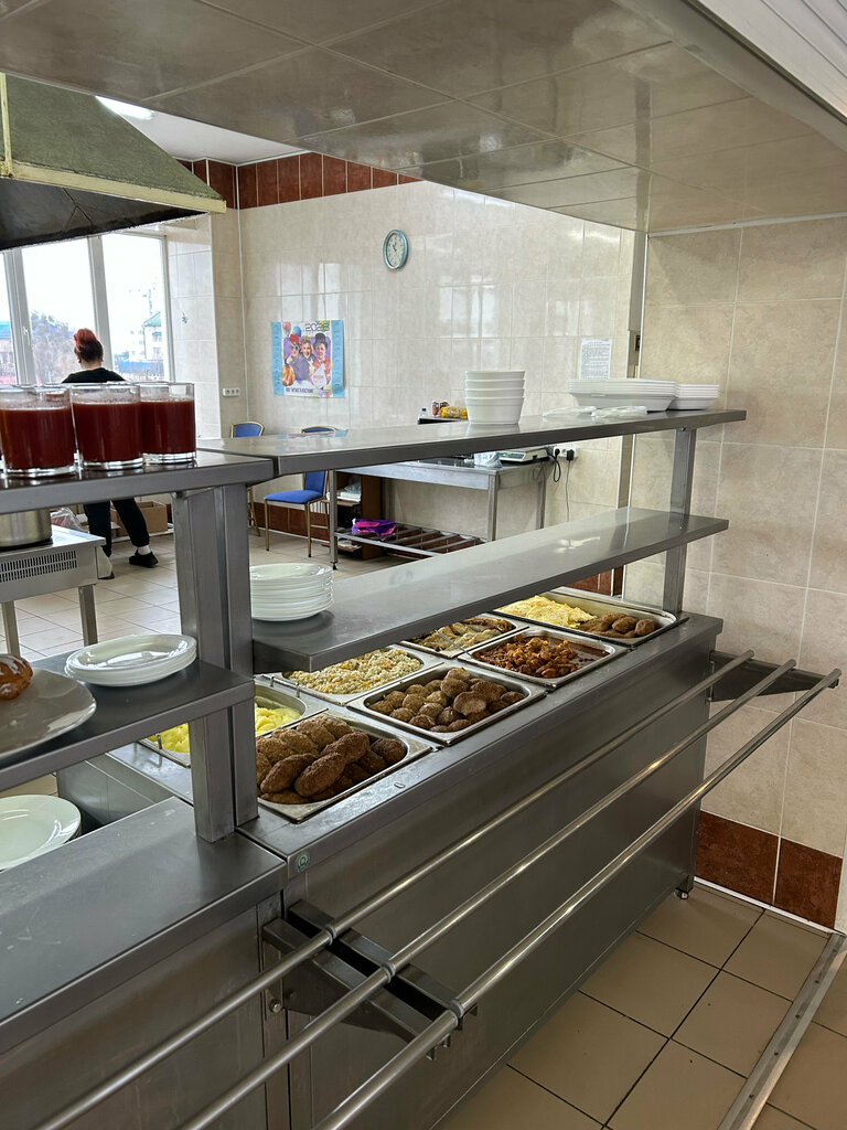 It's a good dining room. At 1:40 p.m., there was only one pickle soup left, which didn't taste good. The rest is fine. The mashed potatoes were just enough for 2 servings, there was also buckwheat. There's roast, goulash, chicken, and a chop. I paid 18p. 54kop for the 2 trays in the photo.