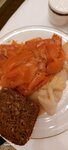 Завтрак в формате шведского стола. Хороший выбор. Ребёнку понравились блинчики с красной икрой.