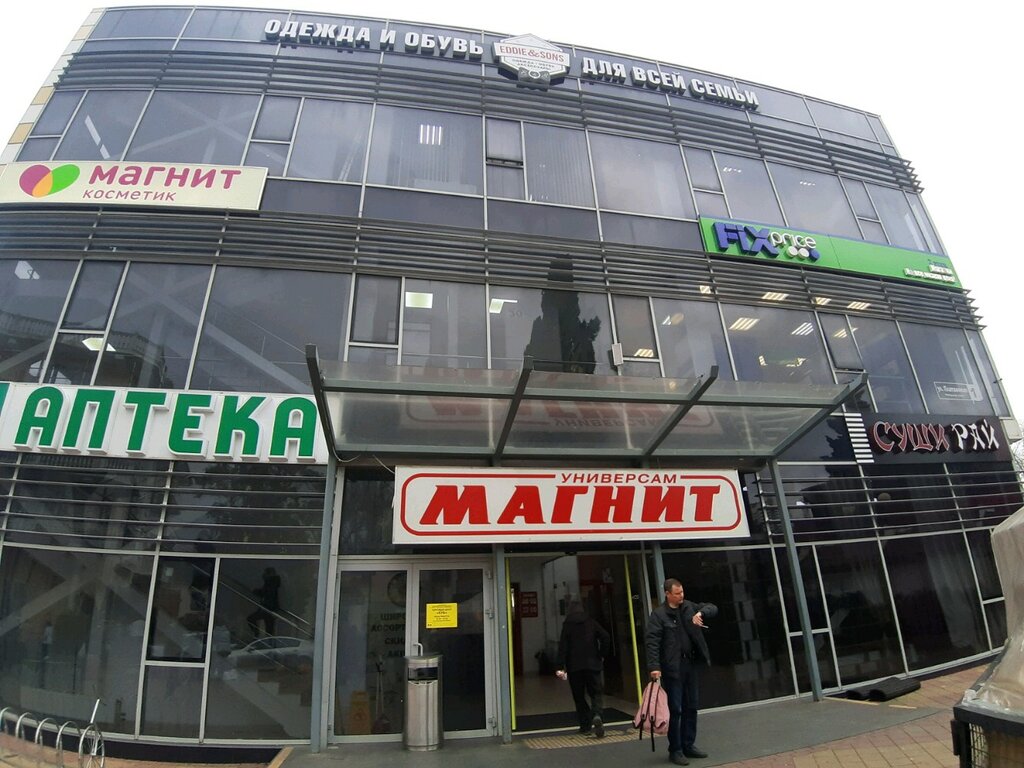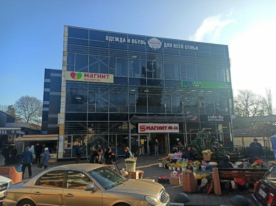 Находится в удобном месте, можно подъехать на машине, в одном здании Магнит (продуктовый), Магнит-косметик, аптека, кофейня, Fix preise. Всегда большой выбор продуктов и цен, что удобно как жителям, так и отдыхающим.