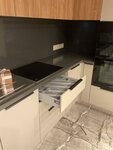 Плюсы: Кухню сделали и собрали быстро, качество материалов отличное (Мы брали столешницу из искусственного камня и ящики МДФ-эмаль). Кухня выглядит замечательно. Минусы: Сервис. 1) При посещении салона показывался один механизм tip-on, по факту установили другой (т.к. санкции, но зачем было при продаже показывать и обещать установить то, чего у вас нет?). 2) Подсветку столешницы обещали сделать с возможностью включения по датчику движения (поднёс руку - включилась), по факту сделали обычную через включатель, узнали мы, что будет так, когда нам привезли кухню. 3) Сборщики приехали не готовые - за каким-то материалами ходили в строительный магазин недалеко от дома, некоторые мелочи не доделали.