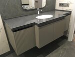 ЛДСП Эггер 18 мм Лава серая U741 ST9 + Дуб Галифакс табакH1181 ST37, Столешница EGGER 38 мм - пластик HPL - F812 ST9, Направляющие Hettich скрытый монтаж с доводчиком, полное выдвижение, Петля с доводчиком Blum, профиль гола золото / Puch to Op...