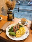 Невероятно уютное и вкусное место. Внутри два небольших зала. Доброжелательный персонал. Заказ осуществляется у стойки, еду и напитки приносят к столу. Большой выбор десертов, выпечки, достойное меню с салатами и горячим. Вкусный кофе.