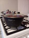 Кастрюли и сковороды с антипригарным покрытием "гранит", так понравились, что пришлось купить несколько изделий. Магазин произвёл хорошее впечатление. Приятное не навязчивое обслуживание. Покупками довольны. Написанное выше было 26.05.2021 года. Изделия на фото прослужили три года их интенсивно использовали на протяжении всего указанного времени, но они не потеряли своего качества и по-прежнему отвечают всем предъявленным требованиям. Не ошиблись при выборе данной посуды.